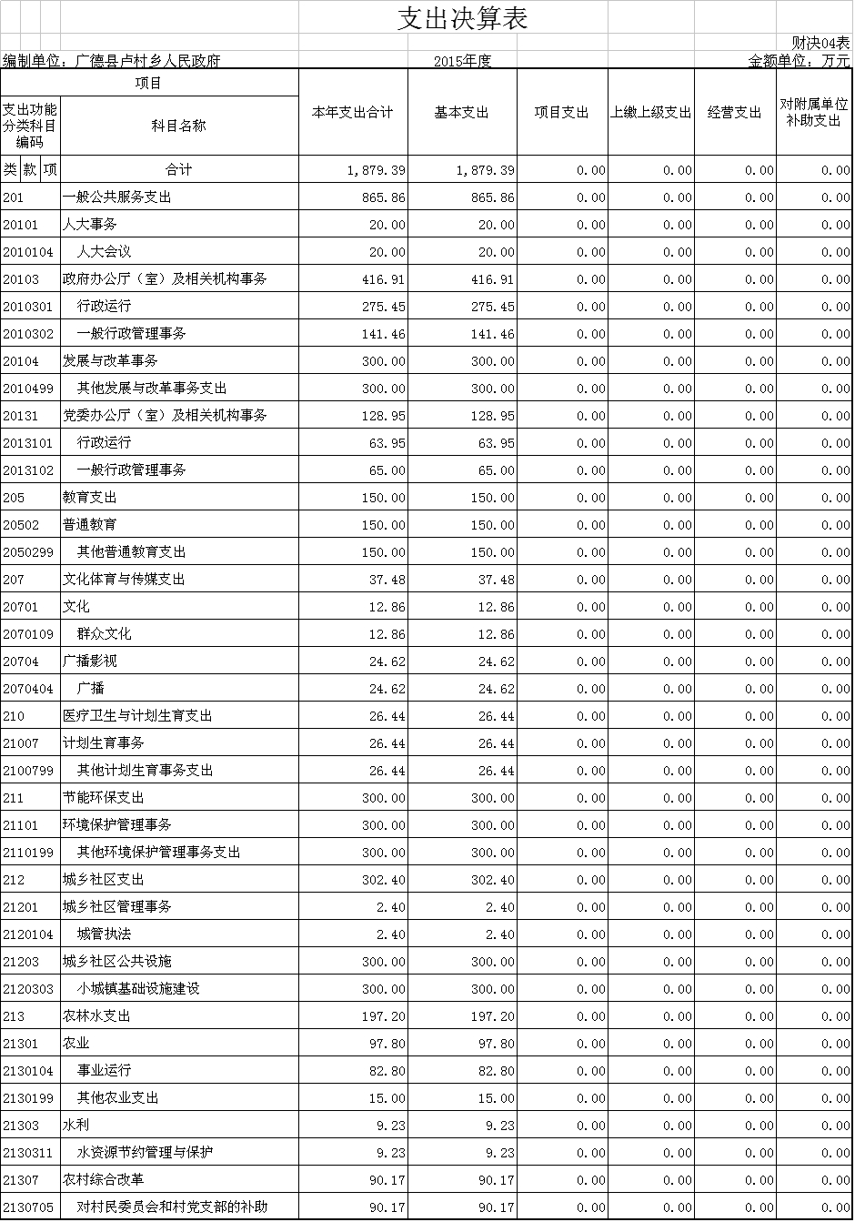 盧村鄉(xiāng)2015年度支出決算表
