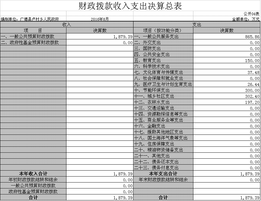 名稱: 財(cái)政撥款收入支出決算總表 文號(hào):