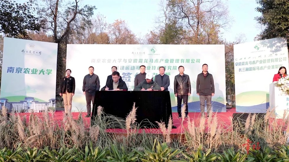 11月21日下午,南京農(nóng)業(yè)大學(xué)與安徽震龍馬術(shù)產(chǎn)業(yè)管理有限公司共建馬產(chǎn)業(yè)技術(shù)研究院簽約儀式在廣德市國際馬術(shù)賽事中心舉行。宣城市政府副市長汪侃,南京農(nóng)業(yè)大學(xué)黨委副書記吳榮順,安徽省畜禽遺傳資源保護中心主任占松鶴,廣德市領(lǐng)導(dǎo)錢會、胡興華、江曉華出席簽約儀式。