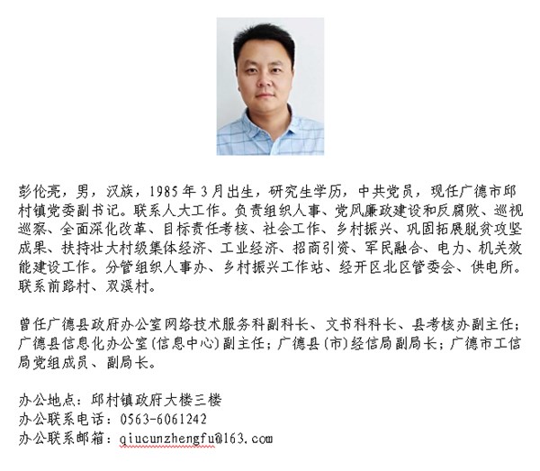 | 名稱(chēng): | 邱村鎮(zhèn)黨委副書(shū)記彭倫亮 |