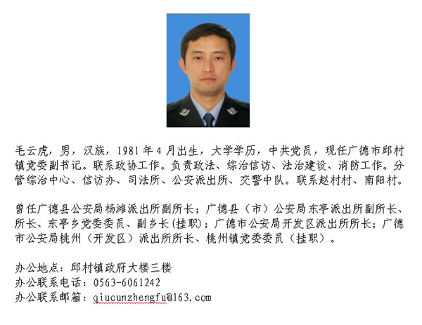 | 名稱: | 邱村鎮(zhèn)黨委副書記毛云虎 |