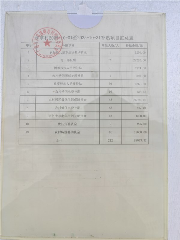 | 名稱: | 東亭鎮(zhèn)柳亭村2025年10月惠民惠農(nóng)資金發(fā)放情況 |